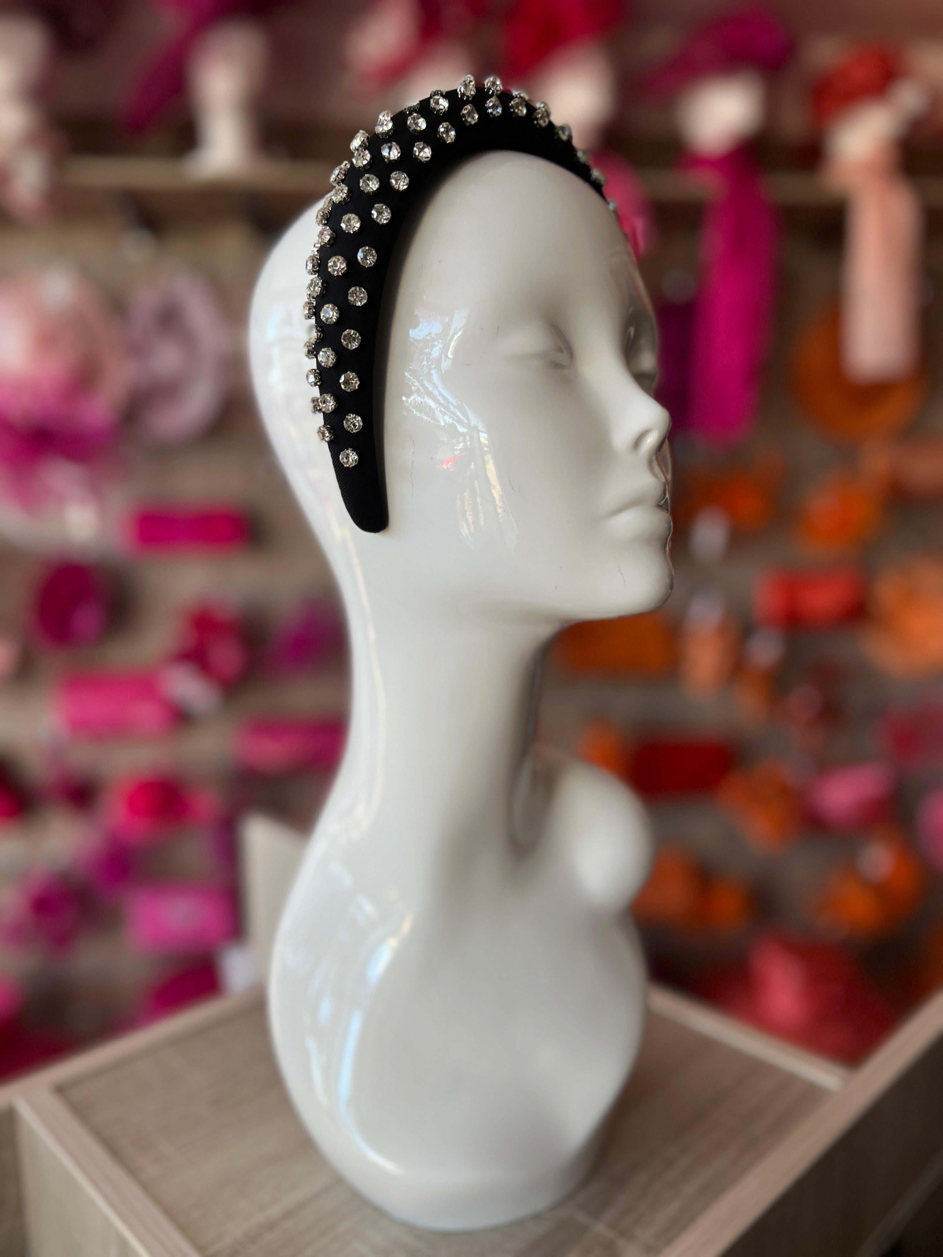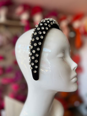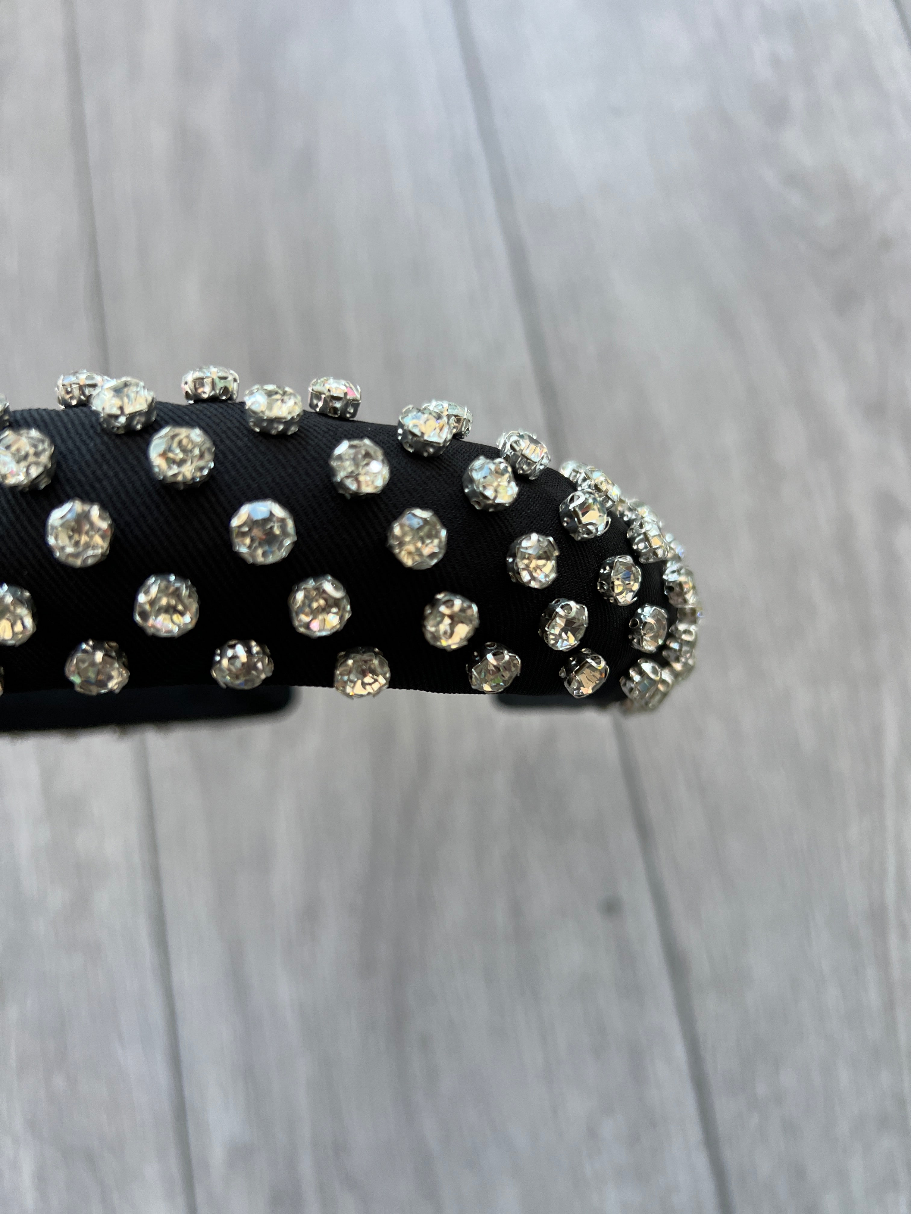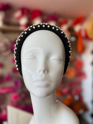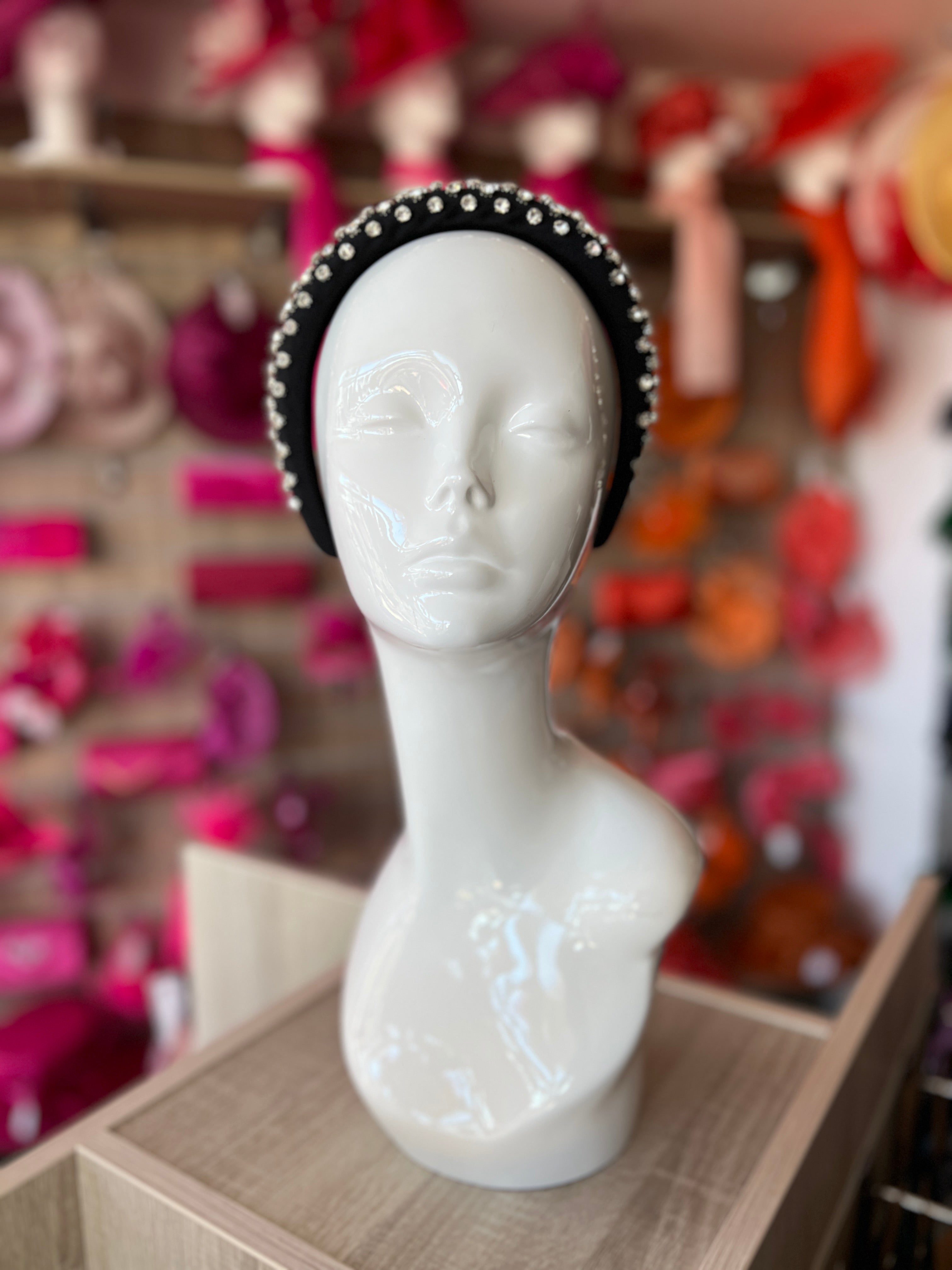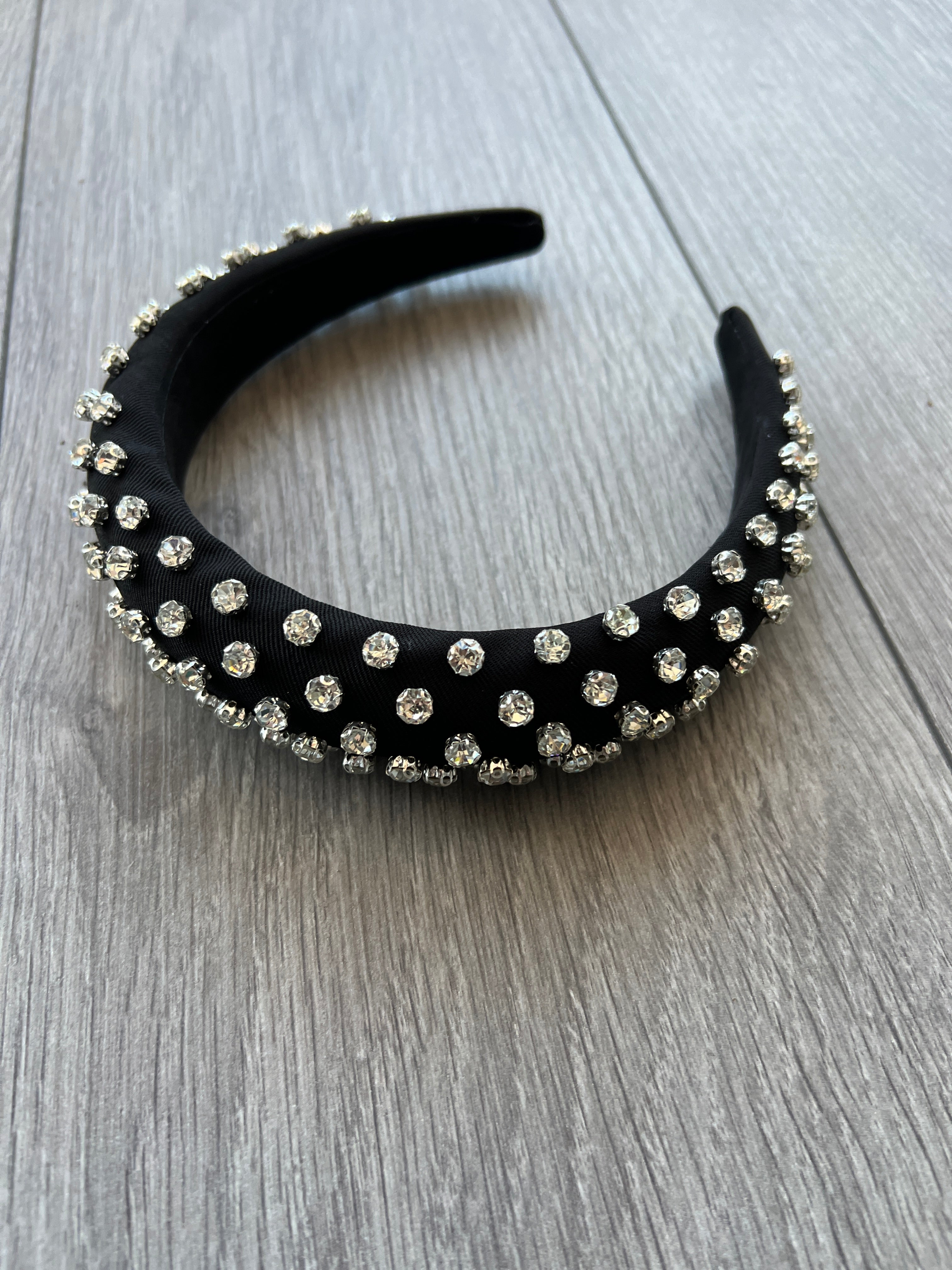 Our beautiful diamante chunky headband in black features a soft finish with a luxury silver diamante embellishment.