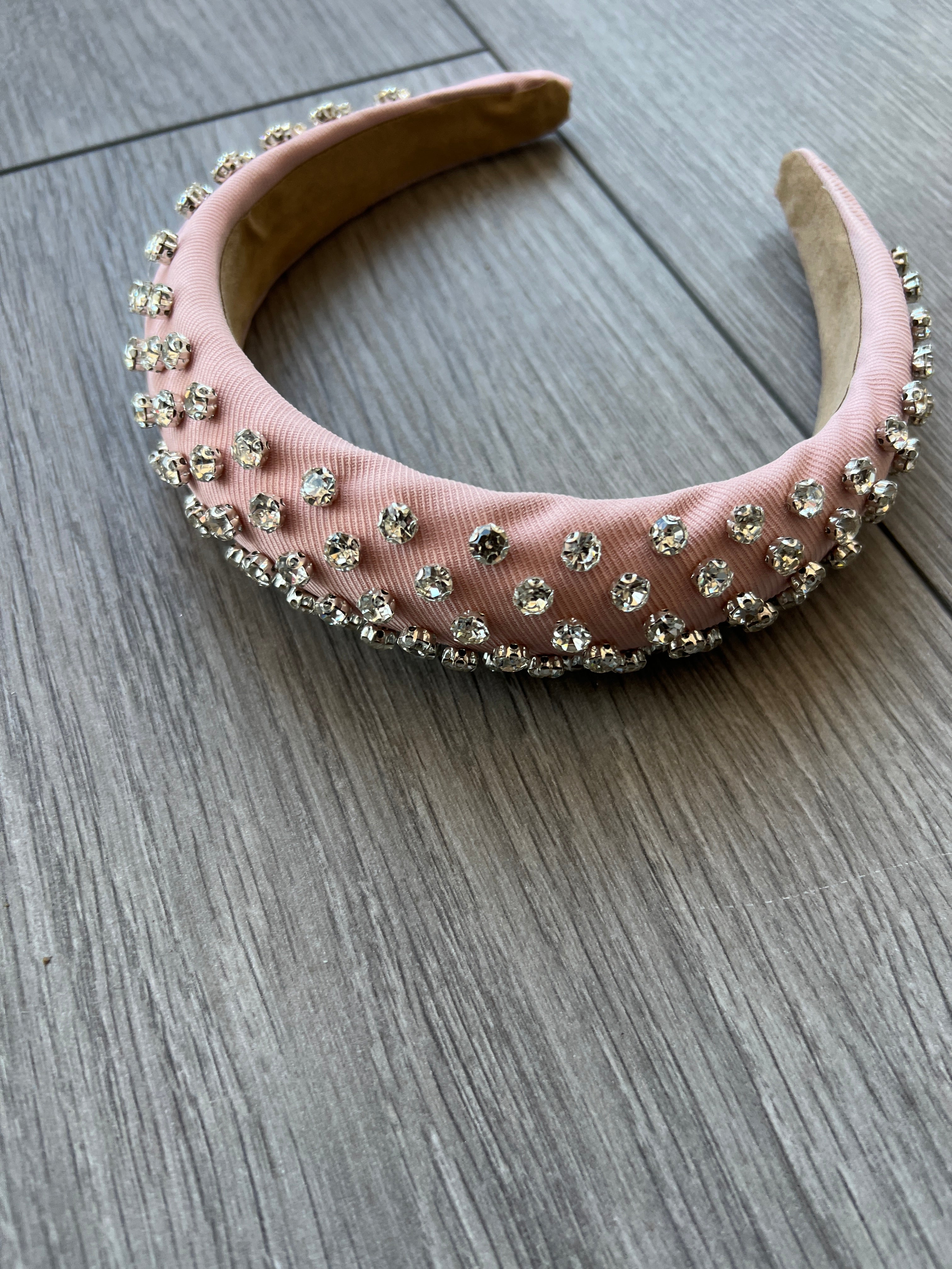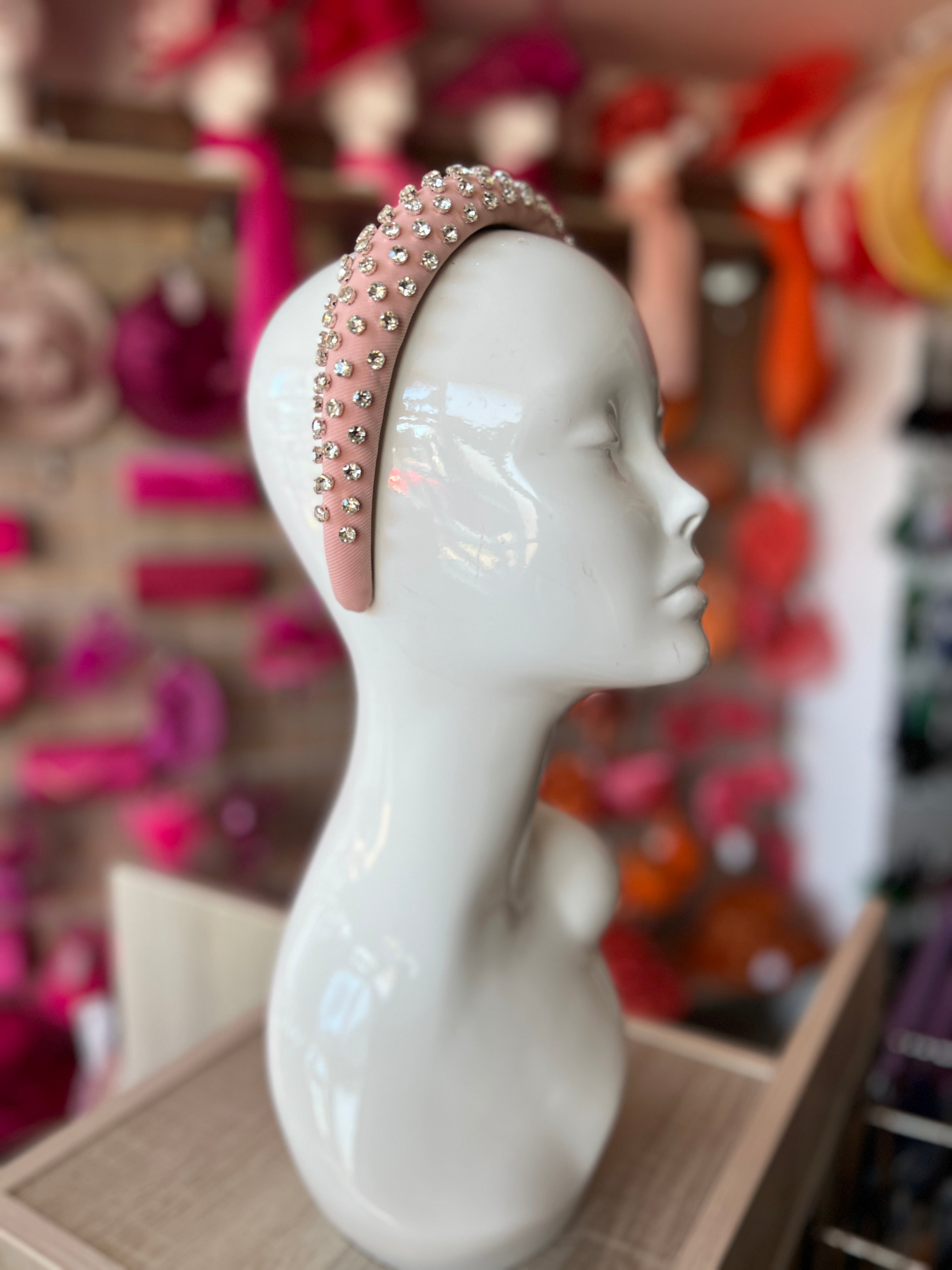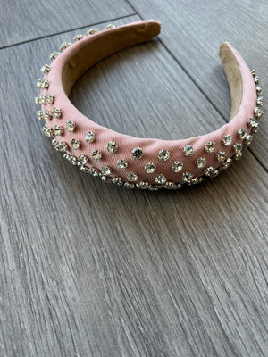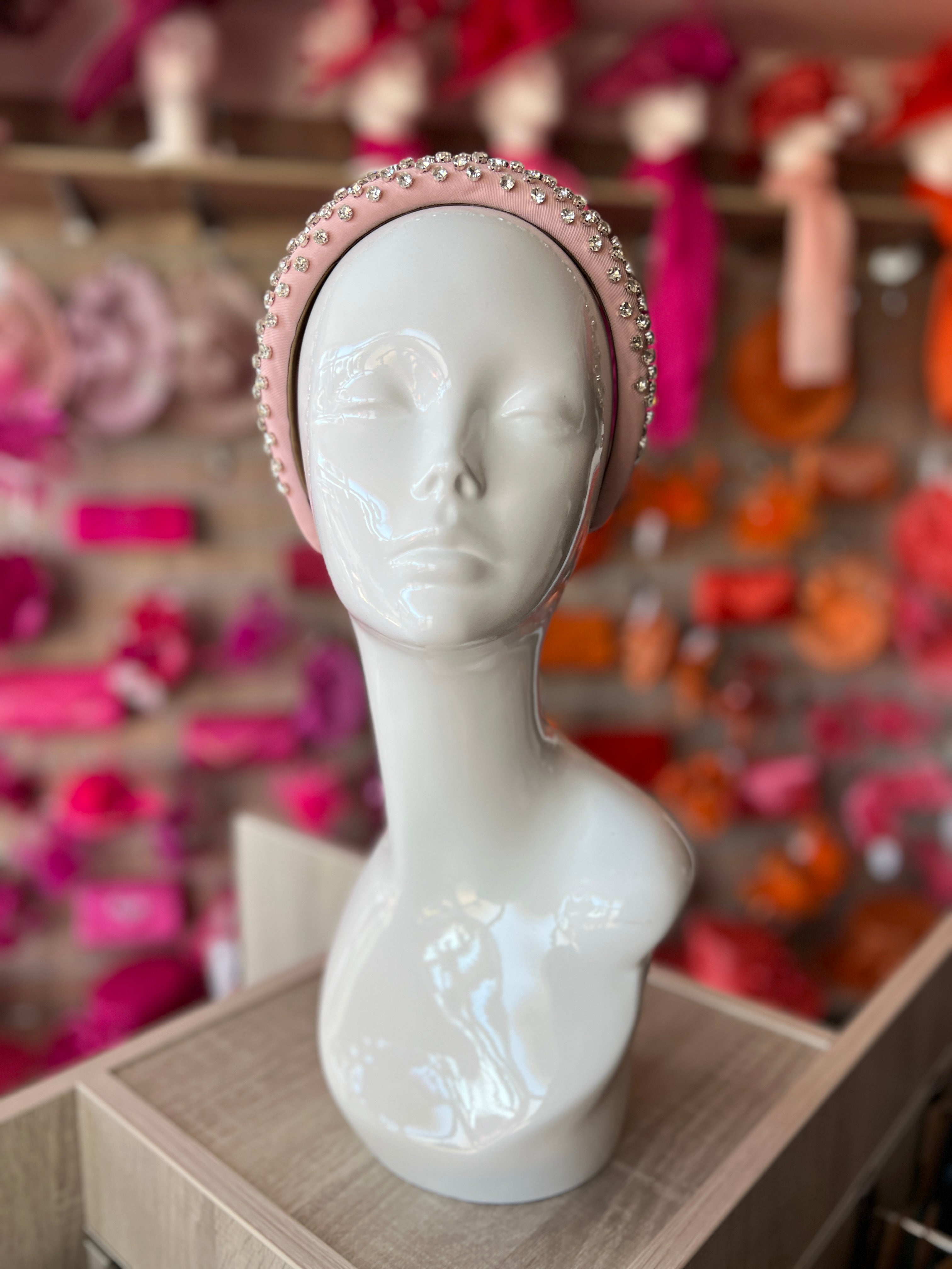 Our beautiful diamante chunky headband in pale pink features a soft finish with a luxury silver diamante embellishment.