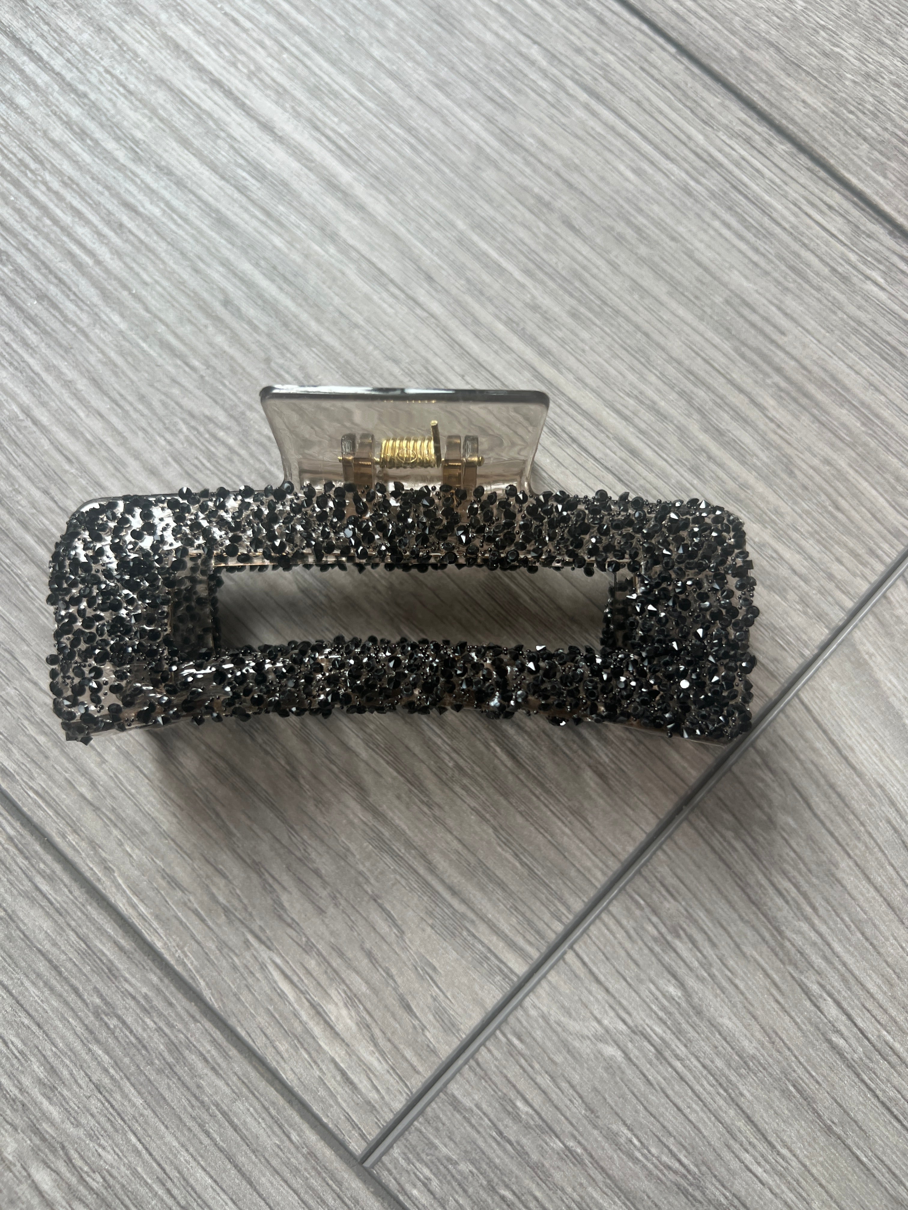A pretty black hair claw which is encrusted with dazzling black diamante,rhinestones. A fabulous hair claw for an evening event or just for everyday wear.