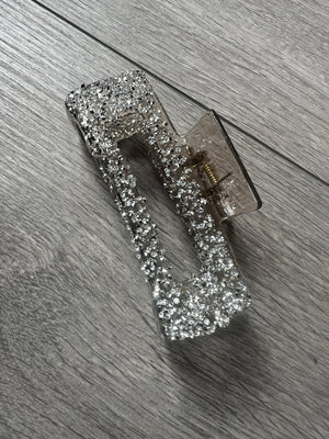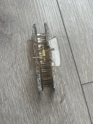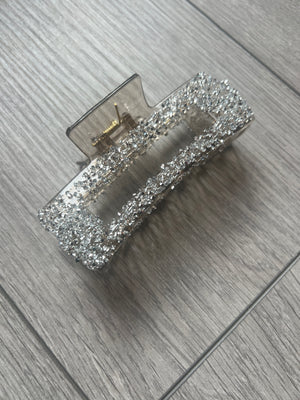 A pretty silver hair claw which is encrusted with dazzling silver diamante,rhinestones. A fabulous hair claw for an evening event or just for everyday wear.