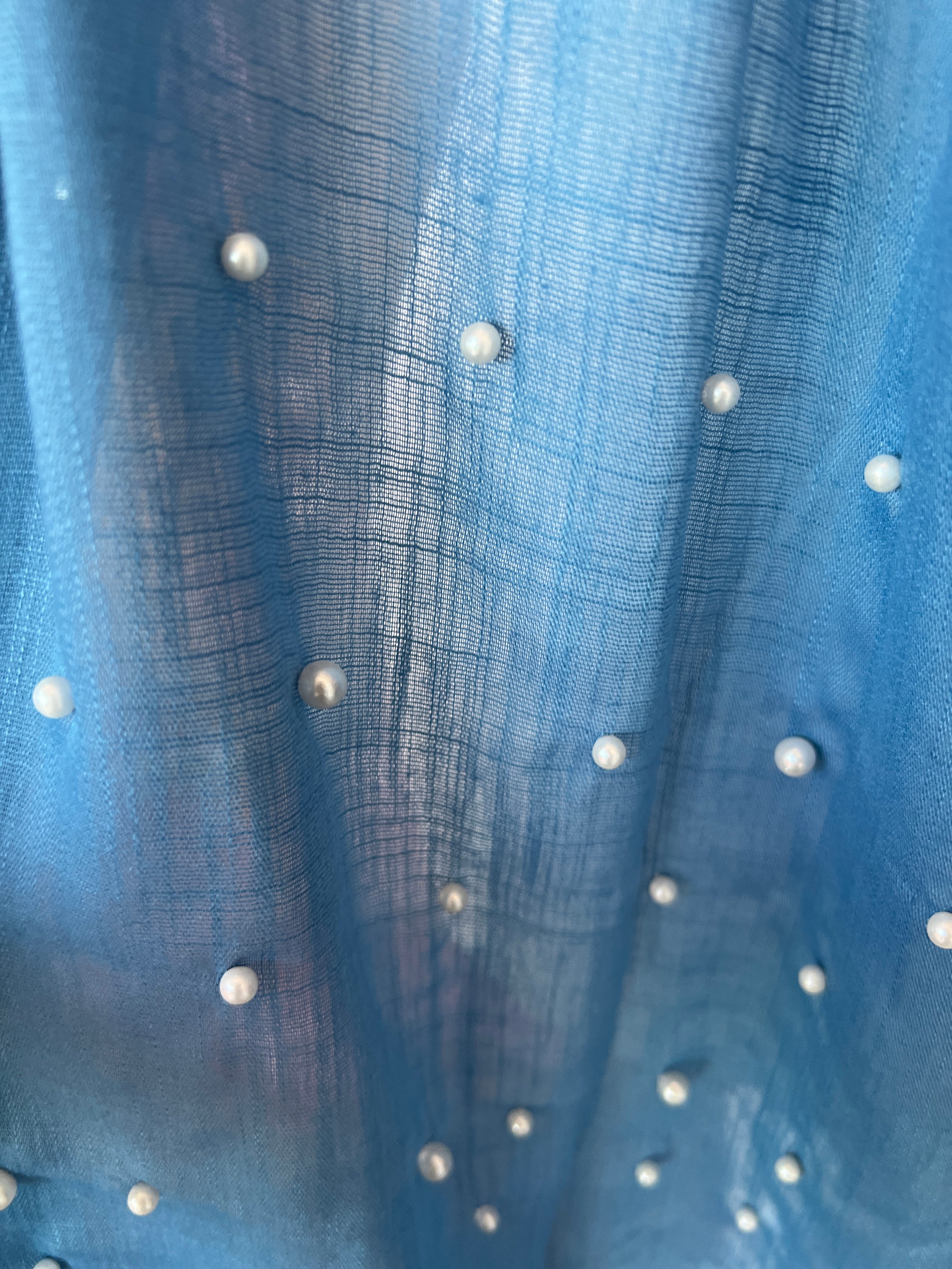 A timeless, elegant accompaniment to any look, our airforce blue pashmina/scarf with faux pearl detail can be styled to suit formal looks or to elevate weekend ensembles.