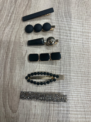 A set of 6 beautiful hair clips made from resin and rhinestones.