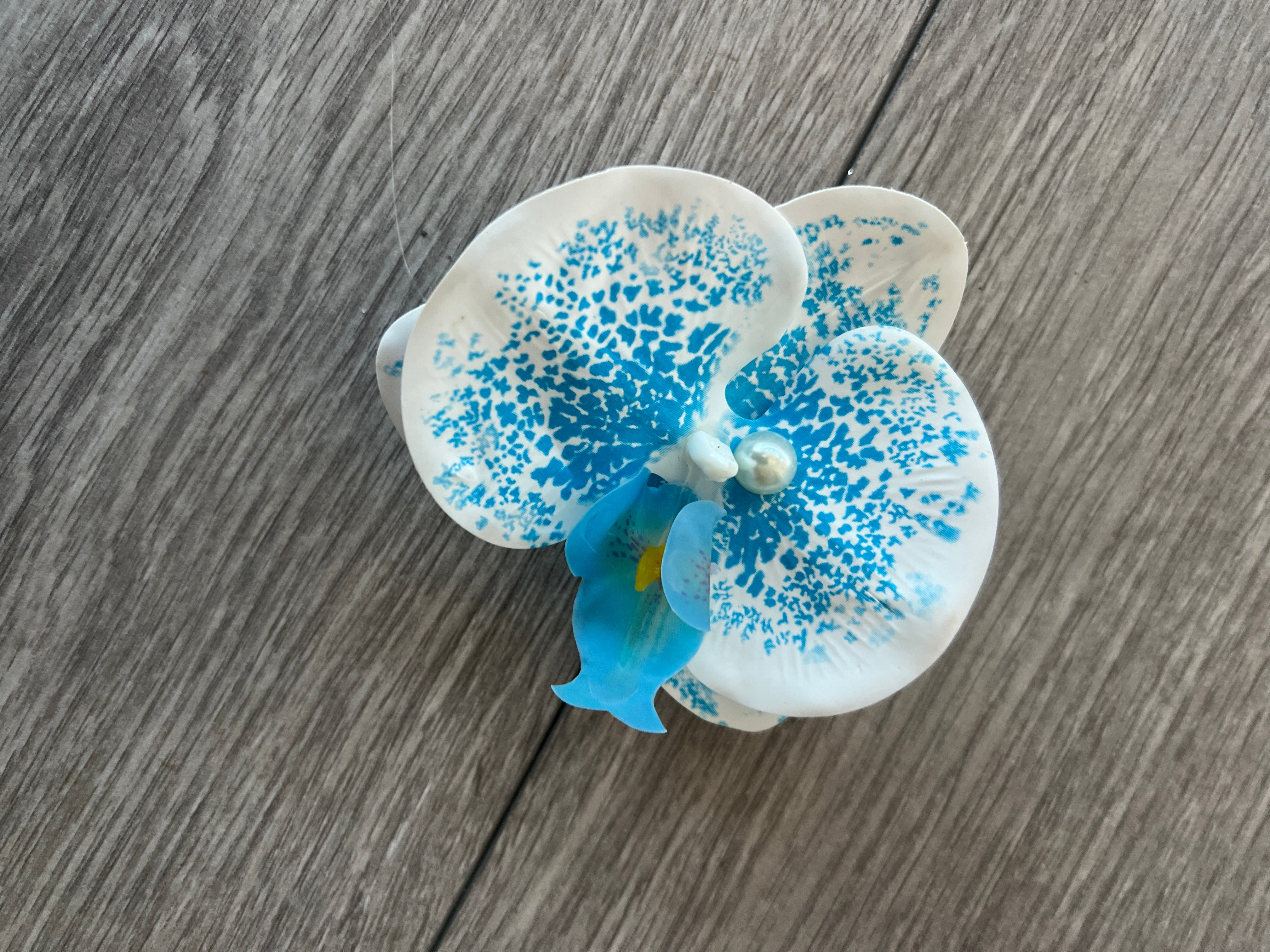 Lightweight and easy to wear, these gorgeous blue and white orchids clips attach to your hair using an alligator clipFixing Type - Hair Clip.