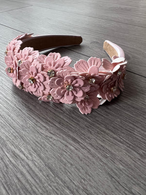 Our stunning blush pink headband with faux leather laser cut flowers and diamantés .