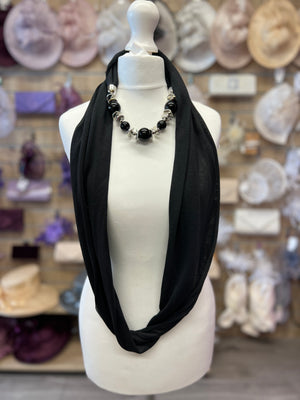 This beautiful black scarf necklace features a one-of-a-kind that will make you stand out in any crowd.