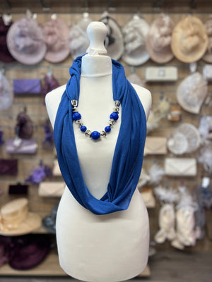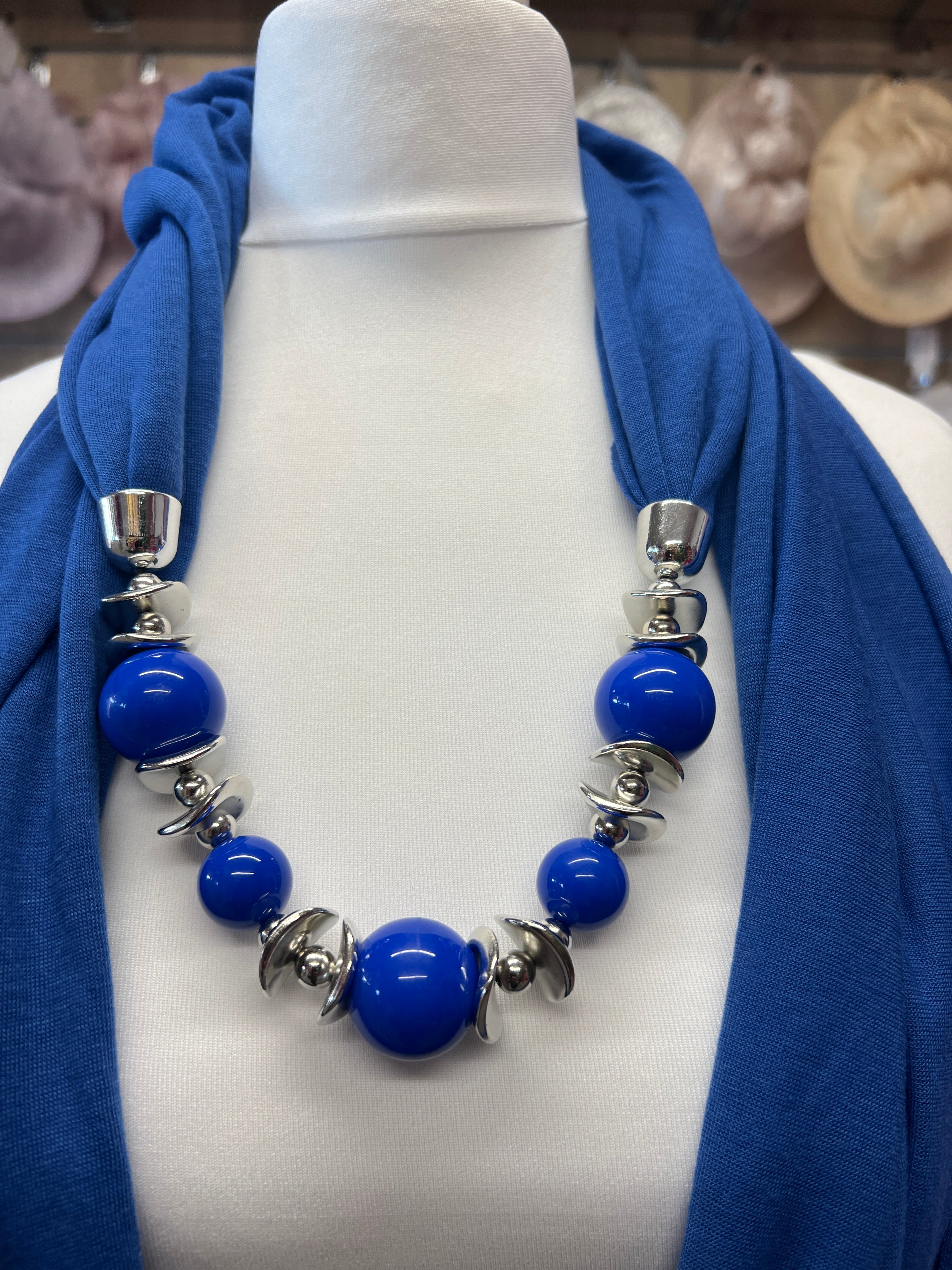 This beautiful blue scarf necklace features a one-of-a-kind that will make you stand out in any crowd.