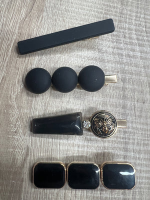 The trendiest way to wear these glistening black hair clips are on each side of your head, placed just above the temple or on side.Add a touch of sophistication and sparkle to your hair with these set of six hair clips,These hair clips are adorned with beautiful rhinestones and resin which will add an elegant touch to your hairstyle.These hair accessories are perfect for any occasion, whether it's a wedding, party, formal event or workwear. These hair clips are suitable for all hair types, including curly, coarse, wavy, short, thin and long hair.