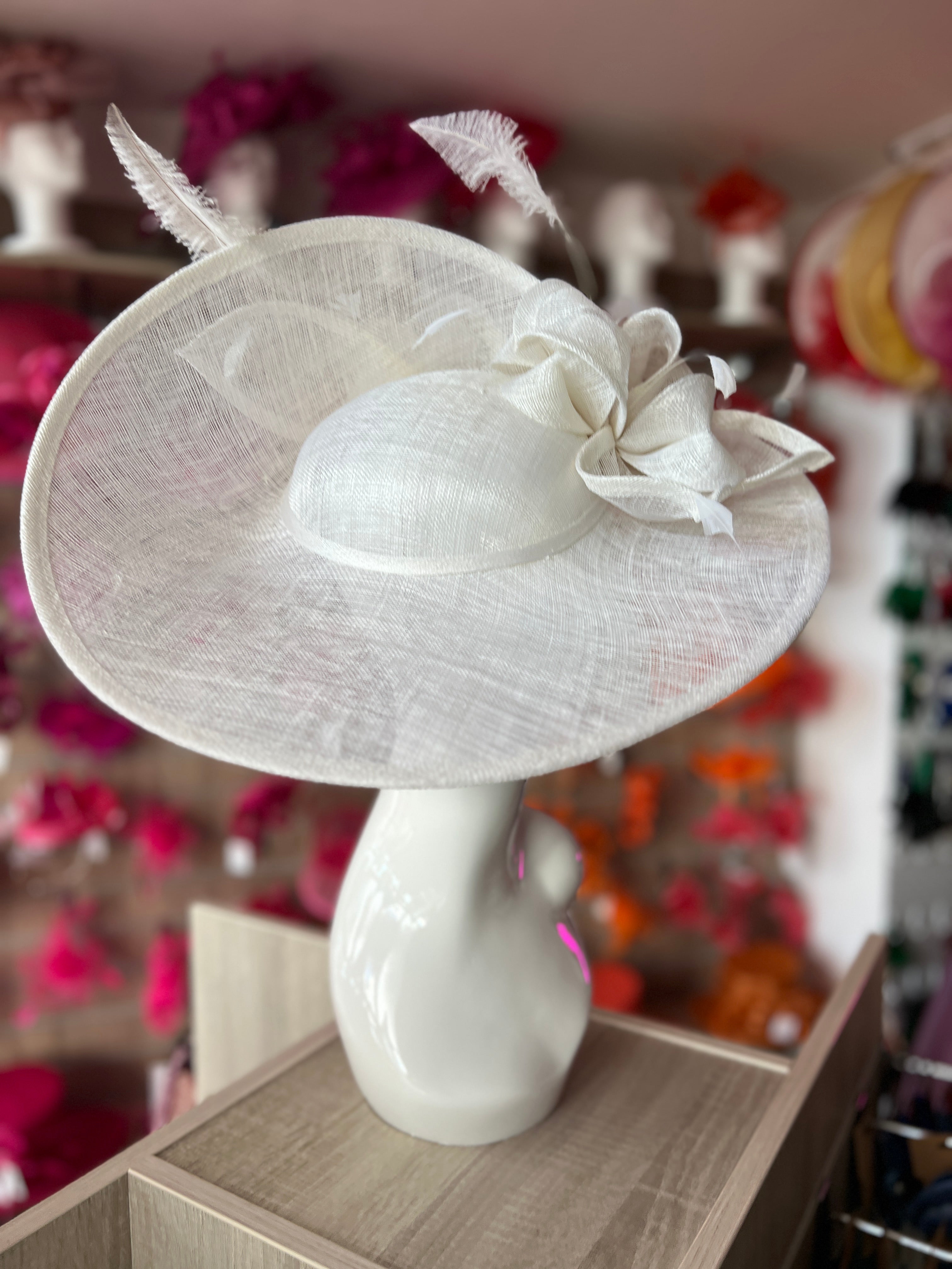 Worn on the head with a secure double wire headband, these glamorous large white hatinators will add some drama to your occasionwear outfit