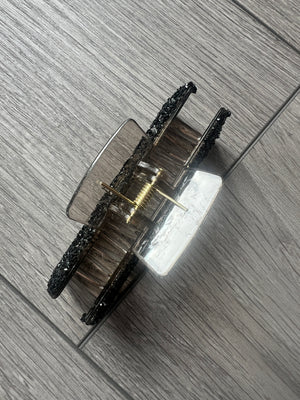 A pretty black hair claw which is encrusted with dazzling black diamante,rhinestones. A fabulous hair claw for an evening event or just for everyday wear.