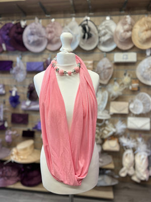 This beautiful pink scarf necklace features a one-of-a-kind that will make you stand out in any crowd.